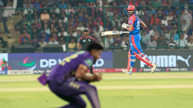 DC vs KKR Live Score: First blow to Kolkata on 48