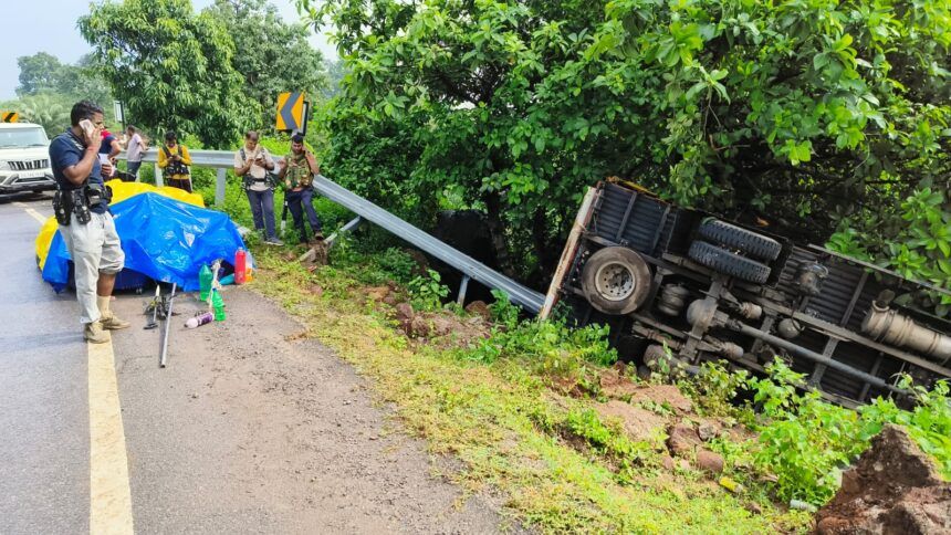 A truck full of CRPF soldiers went out of control and overturned at Bastanar Ghat, 3 soldiers injured