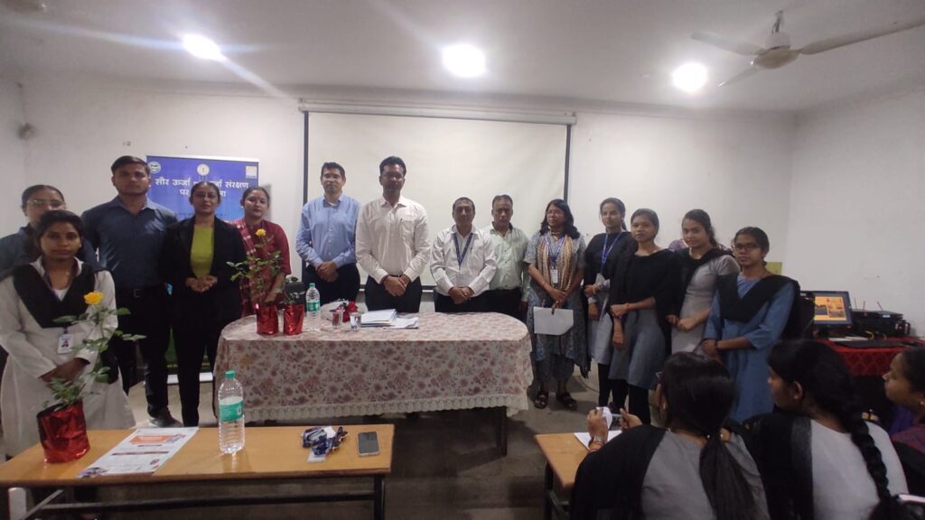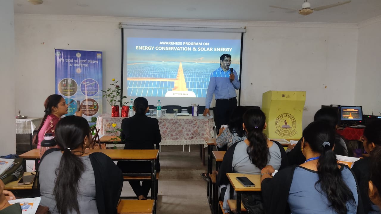 “Workshop on Solar Energy and Energy Conservation Awareness” program was organised on Thursday February 27, 2025 at Pragati College, Chaubey Colony Raipur. Chief Executive Officer of Chhattisgarh State Renewable Energy Development Agency (CREDA), Energy Department, Government of Chhattisgarh, Mr. Rajesh Singh Rana, Project Coordinator Mr. Nihar Ranjan Sahu and subject expert Ms. Neha were present as the keynote speakers. The program started under the chairmanship of CEO Mr. Rajesh Singh Rana. The objective of this program was to explain the importance of solar energy among the students and to encourage awareness towards energy conservation.