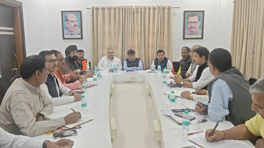 Raipur : In connection with the organisation festival of Bharatiya Janata Party, marathon meetings of BJP were held at the state headquarters Kushabhau Thackeray campus on Friday December 27, 2024 to review the organisation elections and discuss the strategy for urban body and three-tier panchayat elections.