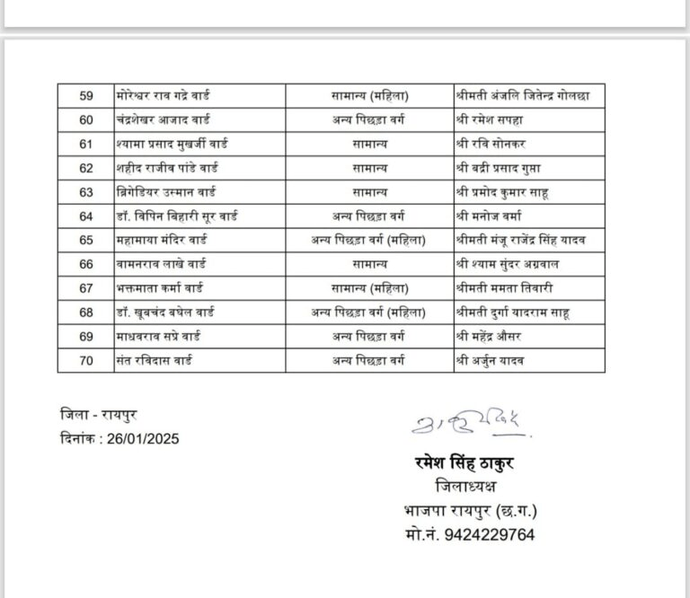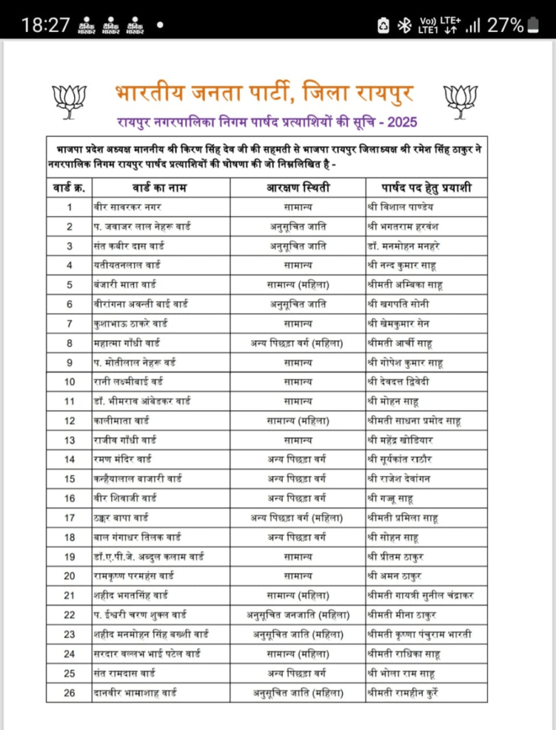 BJP released the list of Raipur councilor candidates, know who has been made the candidate in all 70 wards