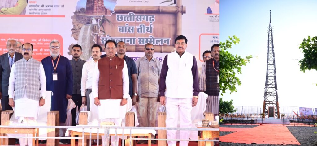 Raipur: A historic moment was witnessed on Froiday November 14, 2025 in village Kathia, Bemetara district, when, as part of the Chhattisgarh Bamboo Shrine Concept Conference program, India’s tallest, 140-foot-tall bamboo tower was dedicated.