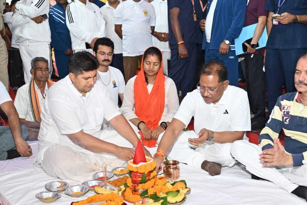 Jashpur Nagar : Chief Minister Vishnu Deo Sai on June 21 International Yoga Day practiced yoga with thousands of people at the district headquarters Jashpur. He congratulated and wished on International Yoga Day. The Chief Minister said that yoga is not a new discipline for our country. Yoga has been going on in our lives since ancient times. Our sages have invented it.
