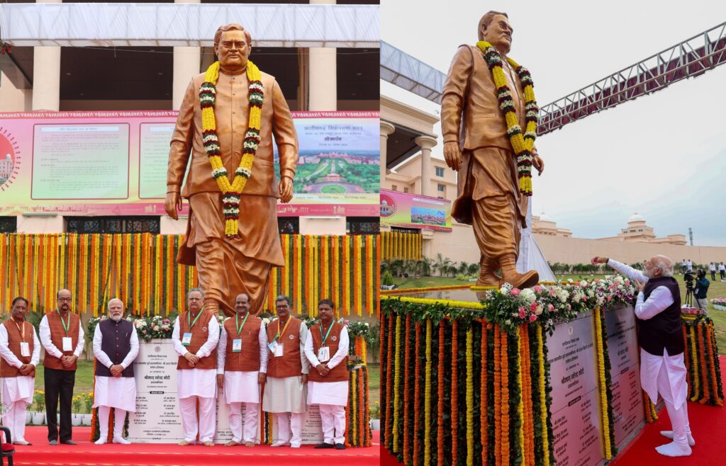 PM at the unveiling of the statue of Bharat Ratna former Prime Minister, Shri Atal Bihari Vajpayee ji at the new Chhattisgarh Legislative Assembly Building, in Nava Raipur, Chhattisgarh on Saturday November 1, 2025
