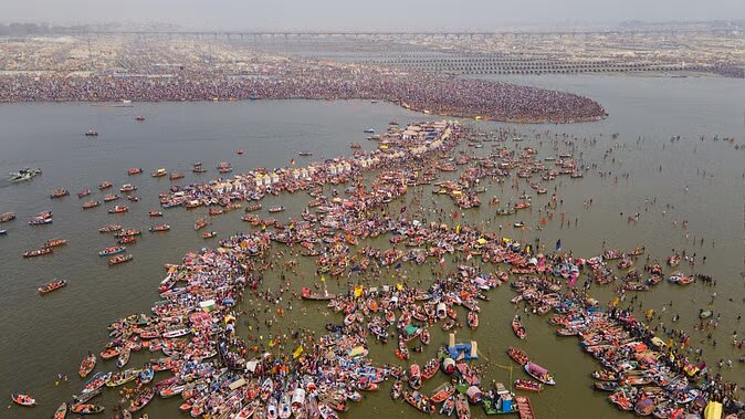 Crowd at Sangam during Maha Kumbh. – Photo: Prime Look
