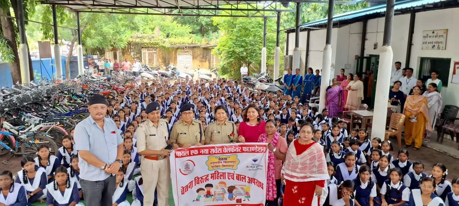 Bilaspur:. In Mohanti Uchcha Madhyamik Shaala, Payal Foundation Savera Foundation in collaboration with Bilaspur Police organised a program Chetna against Women and Child Crimes. In the program, Additional SP Archana Jha gave information about cyber crime. She suggested keeping a complaint box in the school so that girl students can convey any kind of problem to the police department. The police will help them in every possible way. Additional SP Garima Dwivedi made the girl students aware of the category of child crime.