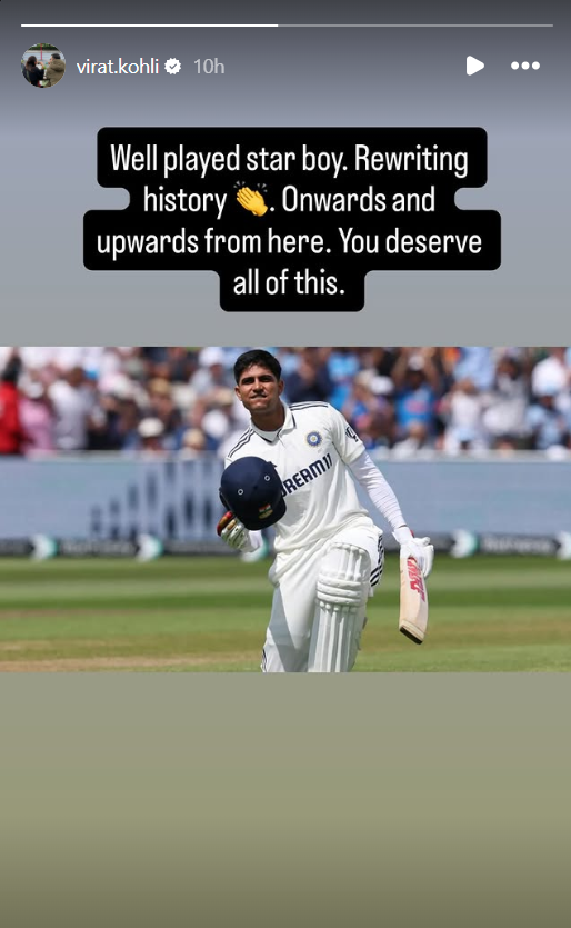 Gill, popularly known as Prince, scored a double century in the first innings of the Edgbaston Test. He got his name recorded in the pages of history by scoring two centuries in two consecutive innings. After this, Virat Kohli, known as the King of Cricket, praised Gill in his Instagram story. Kohli wrote, ‘What a wonderful game Star Boy. You are writing history again. From here you will only go upwards and move forward. You deserve all this.’