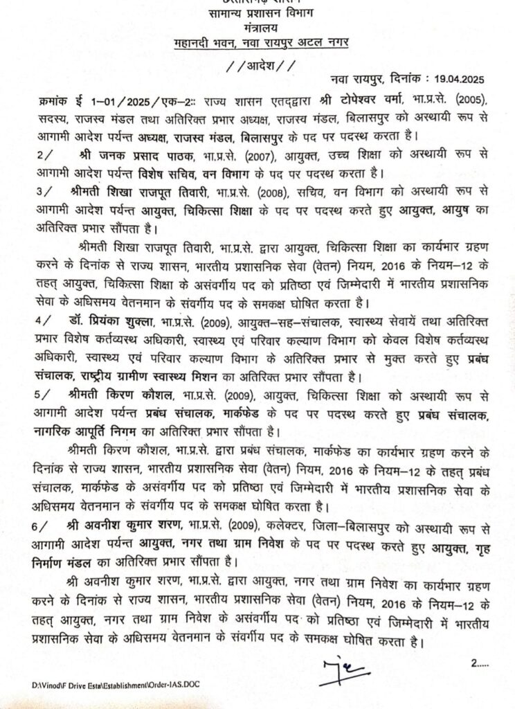 The state government has transferred a large number of IAS officers. The order issued includes the names of 41 officers. In which collectors of many districts have been changed.