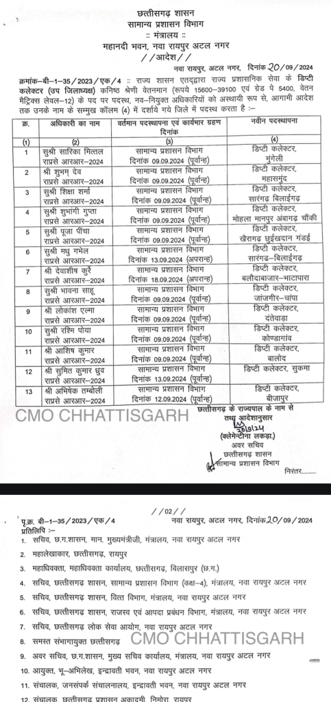 Raipur: A large number of deputy collectors have been appointed in Chhattisgarh. The order issued includes the names of 13 officers.