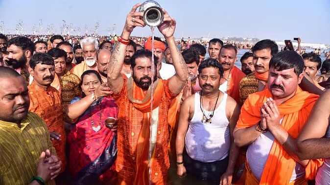 Maharashtra Deputy Chief Minister Eknath Shinde took a holy dip in Sangam