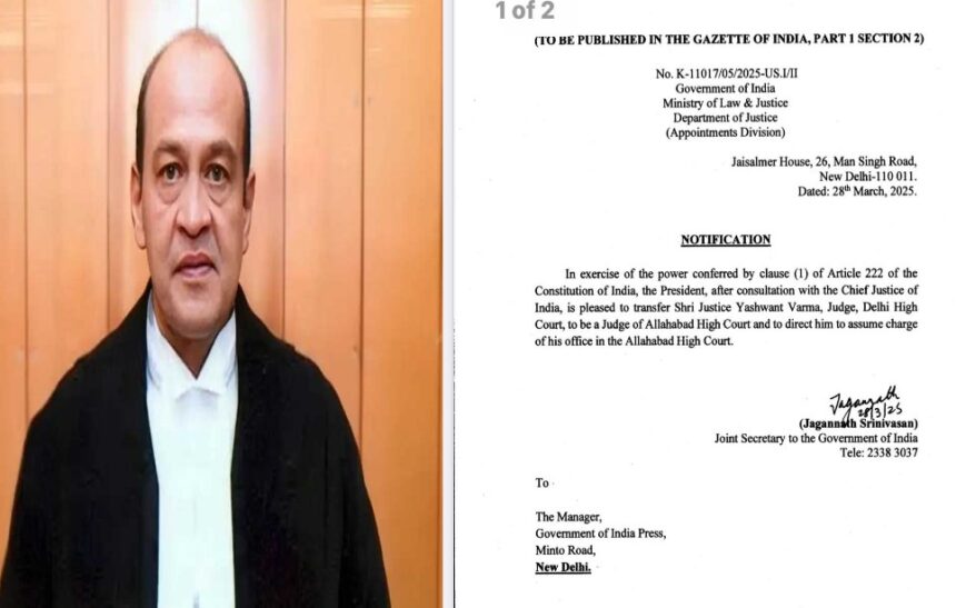 New Delhi: The Central Government has issued a notification to transfer Justice Yashwant Verma, Judge of Delhi High Court, to Allahabad High Court. According to the order issued in this regard, Justice Verma has been directed to assume his charge as soon as possible and take charge in Allahabad High Court.