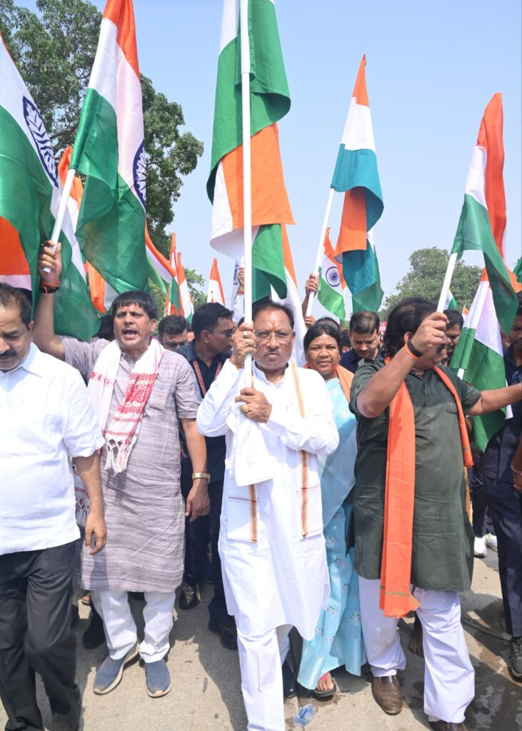 CM Sai participating in a Part of Tiranga Yatra in Chhattisgarh , which is being held acroods the contry -Photo-channel24india.com