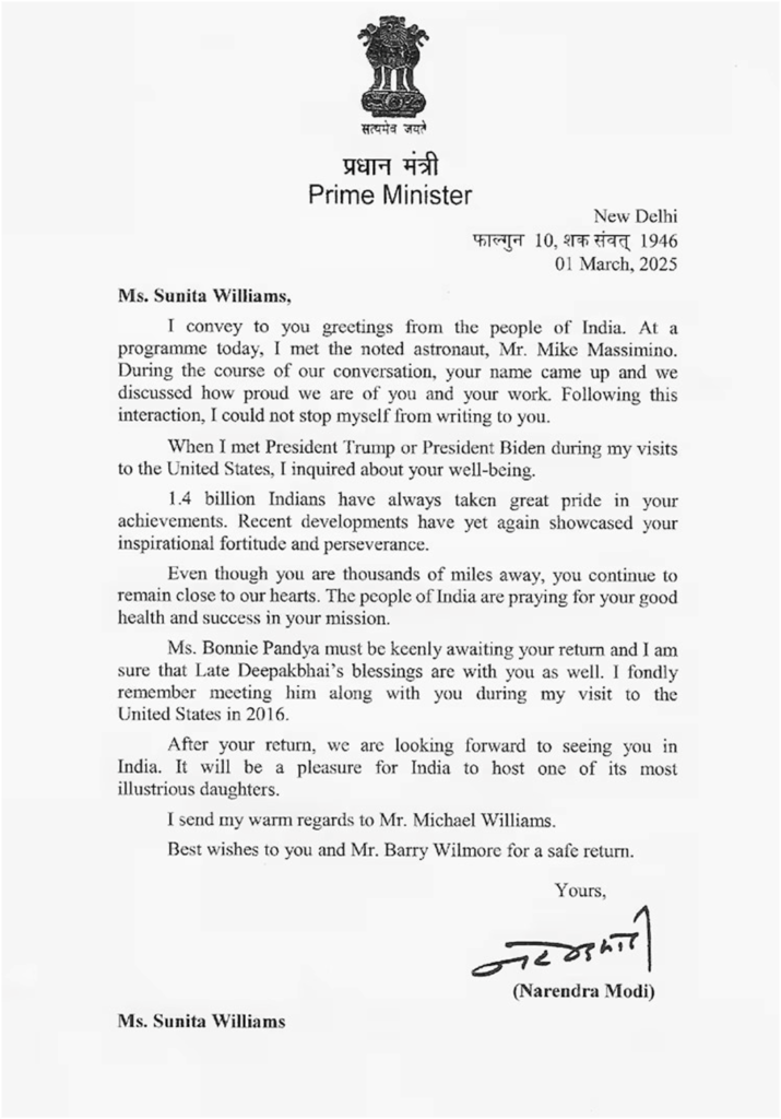 PM Modi wrote this letter on March 1. In this letter, he wished for Sunita’s safe return and called her India’s daughter. The Prime Minister sent this letter to Sunita Williams through renowned astronaut Mike Massimino.