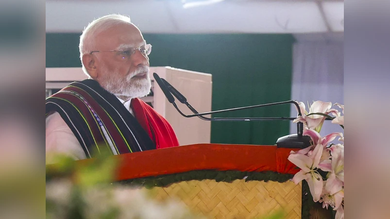 Sept. 13, 2025, Prime Minister Narendra Modi during laying of foundation stone and inauguration of development works, in Churachandpur, Manipur.(Photo:PTI)
