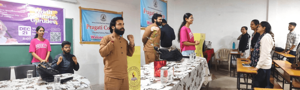 Raipur :A one-day “Meditation” program was observed on Saturday December 21 by the Education Department of Pragati College Chaubey Colony, Raipur , Chhattisgarh on the occasion of ‘World Meditation Day-2024’.