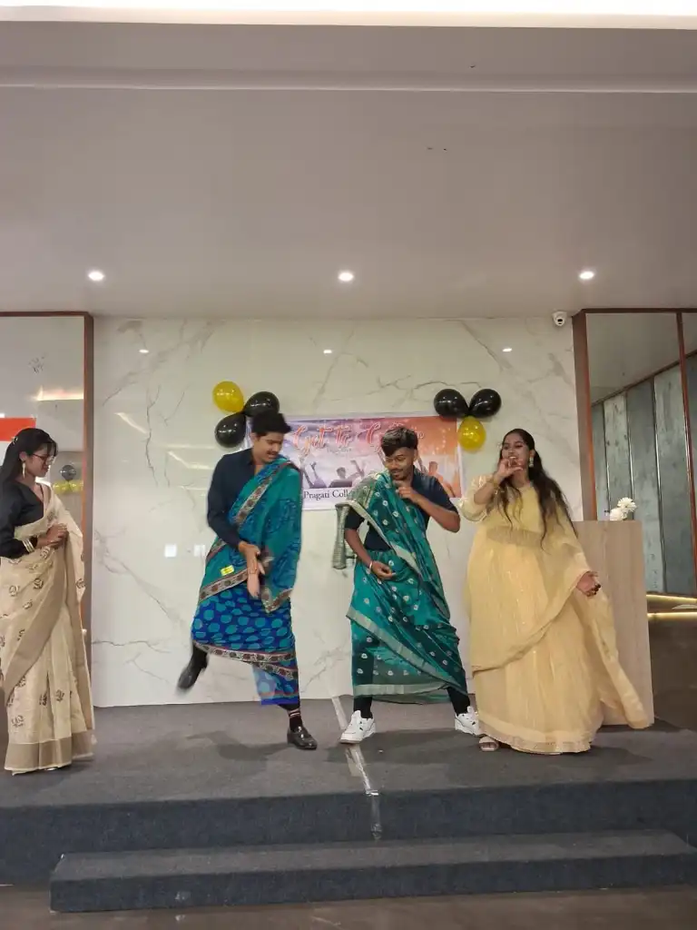 Raipur : A get-together program for the students of the Journalism and Mass Communication Department of Pragati College was held at Pragati College campus on Wednesday, February 4, 2026. Junior and senior students welcomed each other with a tilak ceremony, and the hall was illuminated with vibrant dance and music performances.