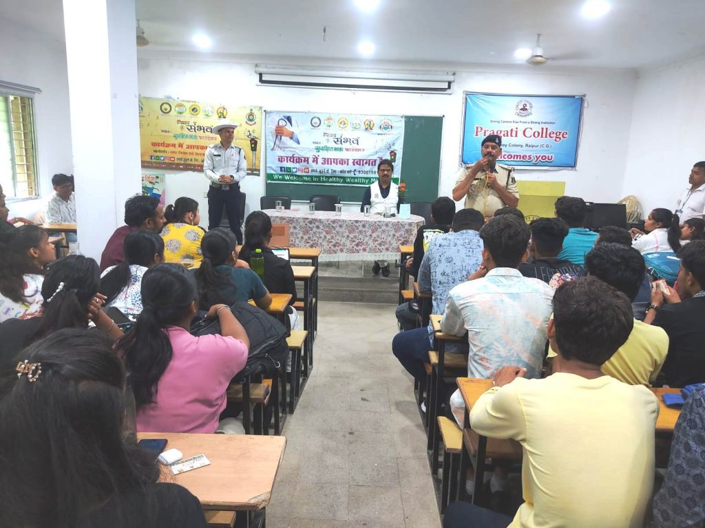 On the occasion of ” World Peace Day” , today on Saturday September 21 Pragati College, Raipur in Cooperation with the Chhattisgarh Traffic Police Department made the students aware of the traffic rules.