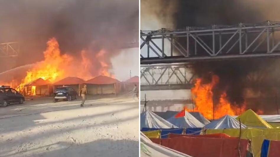 Information is coming out about a fire in Prayagraj Mahakumbh Mela area. It is being told that a massive fire broke out in Shastri Bridge Sector-19 Camp of Mahakumbh Mela area. After receiving information about the fire, many fire brigade vehicles have reached the spot. It is being told that there was a blast in the cylinder while cooking food, after which the fire spread to the entire surrounding area. However, this claim has not been officially confirmed yet.