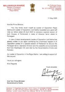 In this letter, both the leaders have expressed the need to discuss serious issues like the recent Pahalgam terrorist attack, ‘Operation Sindoor’ launched by the government, and the ceasefire declared by America.