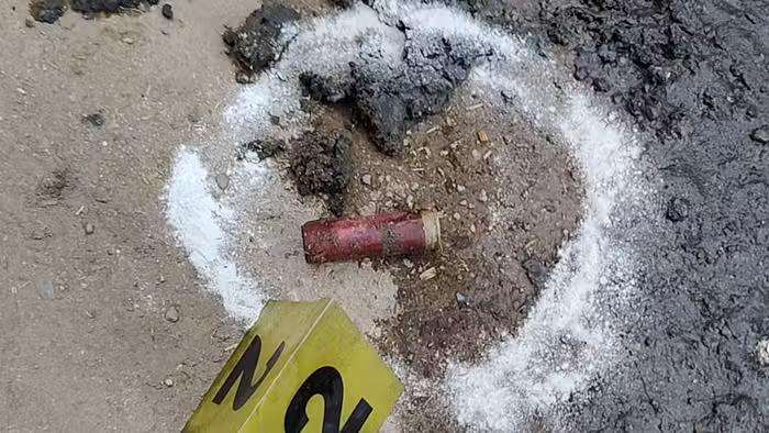 USA made 312 bore shell lying in Kotgarhvi locality of Sambhal – Photo: Samvad News Agency