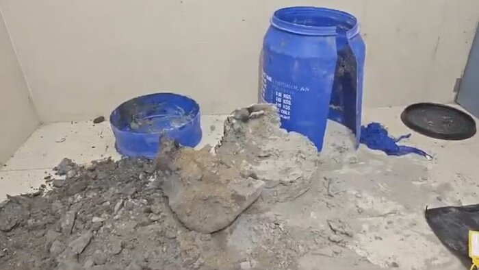 The plastic drum in which the dead body was kept after the murder and sealed with cement – Photo: Samvad