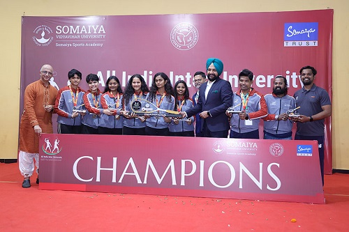 Somaiya Vidyavihar University, a leading multi-disciplinary university, built upon the 84-year legacy of the Somaiya Vidyavihar, recently hosted the AIU All India Inter-University Squash (Men & Women) Tournament 2024-2025. The tournament saw enthusiastic participation from 33 universities nationwide, with 30 mens and 29 womens teams competing. In an exciting finale, Somaiya Vidyavihar University emerged victorious in both the mens and womens categories.