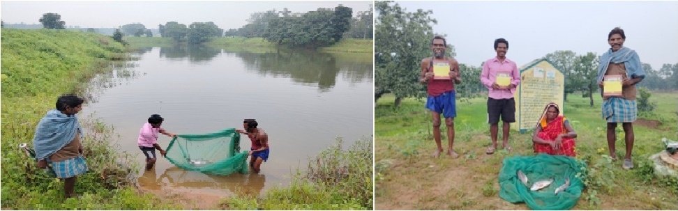 The Gram Panchayat leased the Amrit Sarovar to a local women’s self-help group as a livelihood enhancement tool. Women members of the “Jai Maa Women’s Self-Help Group” earned ‘₹ 75,000 by selling fish from this pond last summer. The group’s president Sonkunwar, and secretary, Jirabai said that fish production worth approximately 3 lakh Rupees is expected this year. This initiative is providing an additional source of income and a means of nutritional enhancement for women.