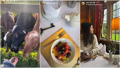 Trupti Dimri shared several pictures on her Instagram story. In one picture, she is seen feeding goats. In the second picture, she is enjoying hot chocolate. In another picture, she is posing in a restaurant.