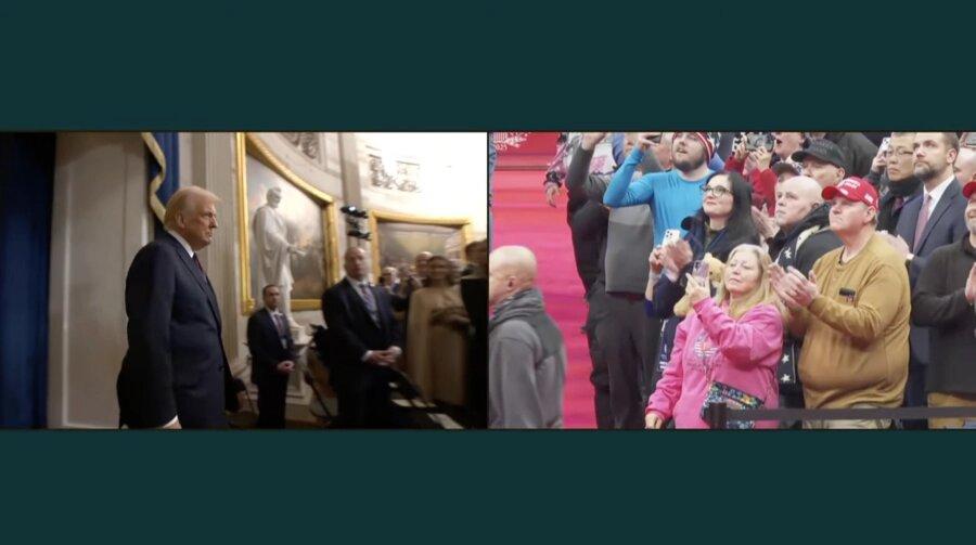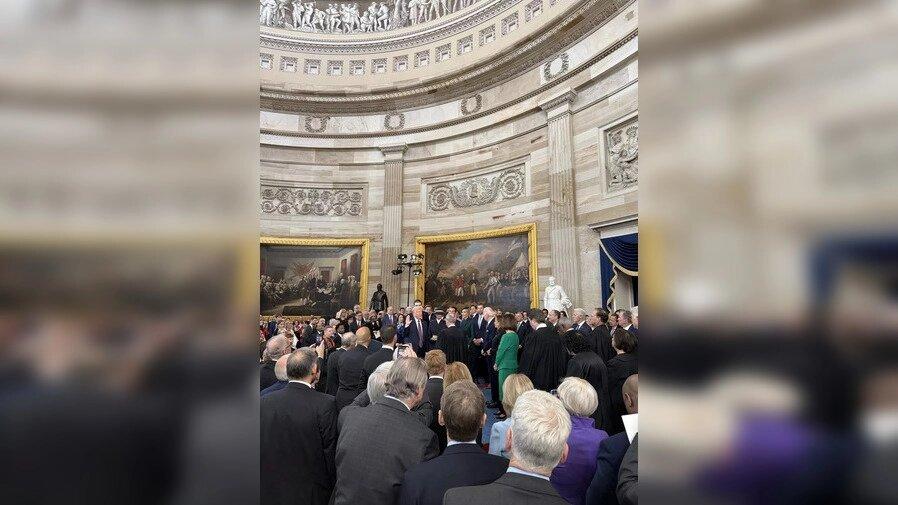 President-elect Donald Trump is entering the Capitol Rotunda for his swearing-in ceremony. Vice President-elect JD Vance entered the room moments ago.