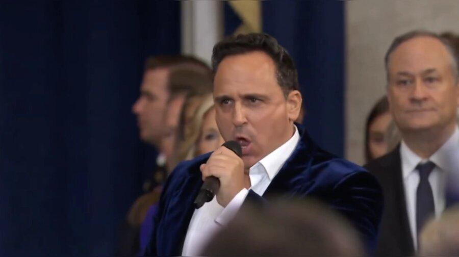 Tenor Christopher Macchio is singing “Oh, America” in the Capitol Rotunda ahead of swearing-in of Donald Trump.