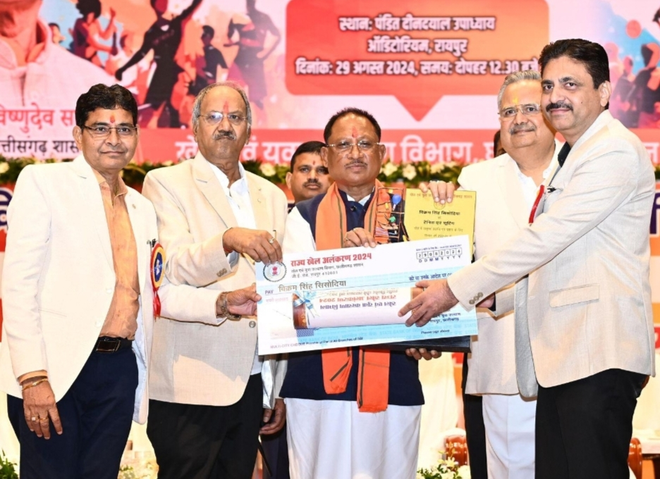 Rajya Khel Alankaran Samaroh was organised on Thursday August 29 at Deen Dayal Auditorium in Raipur, in which Chief Minister Vishnudev Sai honored the talented players. Vikram Singh Sisodia was honored with Shaheed Vinod Choubey Sports Award for tennis and shooting. Sisodia is the President of Badminton Association. For the year 2022-23, 04 players were honored with Shaheed Rajiv Pandey Award, 07 for Shaheed Kaushal Yadav Award, 01 for Veer Hanuman Singh Award, 15 for Shaheed Pankaj Vikram Award, 05 for Shaheed Vinod Choubey Award and 24 selected players for Chief Minister Trophy were honored with it .